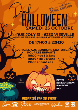 Sg Event vous donne rendez-vous le 25 octobre de 17h à 22h30 dans le parc de la clinique VeteConsult de Viesville pour la 3ème édition du Drink d’Halloween !